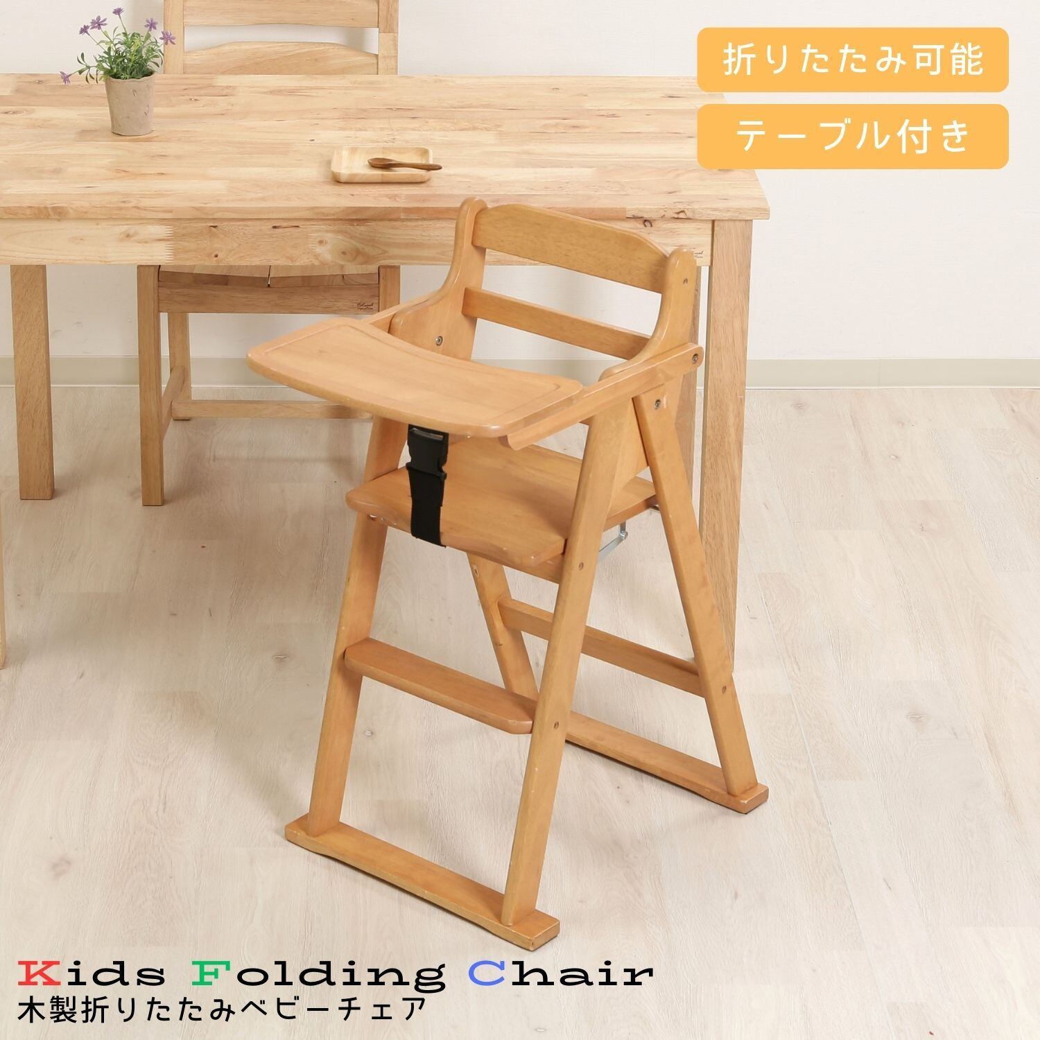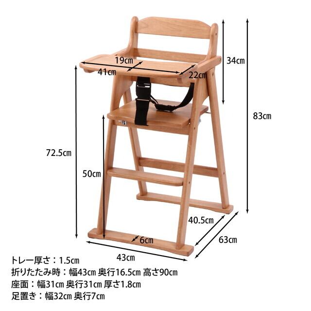 木製 折り畳み ハイタイプ ベビーチェアー ナチュラル トレー付き 幼児用 椅子