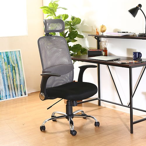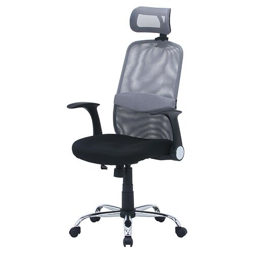ヘッド付 メッシュ アームアップチェア グレー 椅子 通気性 快適 デスクワーク