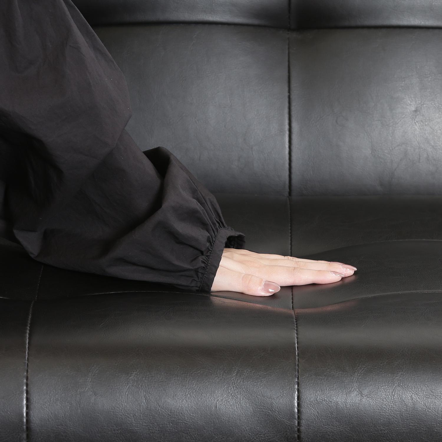 艶感のあるブラック色の合成皮革素材×ナチュラルな木のフレームの組み合わせで、大人の空間を演出しながらもお部屋に置けばまるでカフェの様な雰囲気に♪
