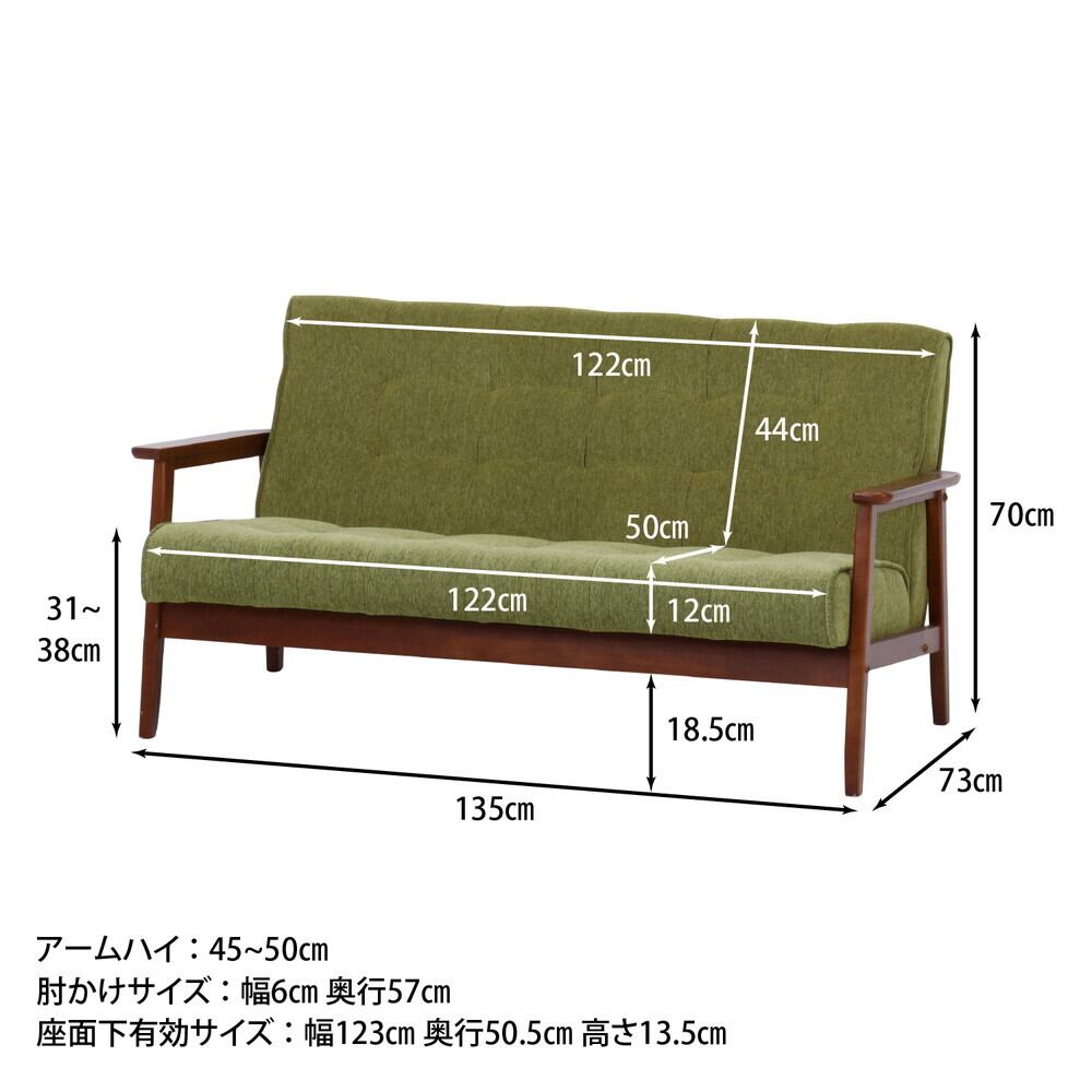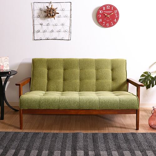 ファブリック ソファー フレンズ グリーン 2P 木製フレーム シック コンパクト