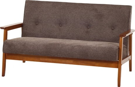 厚手ファブリック ソファ 2P ブラウン 木製フレーム シック コンパクト