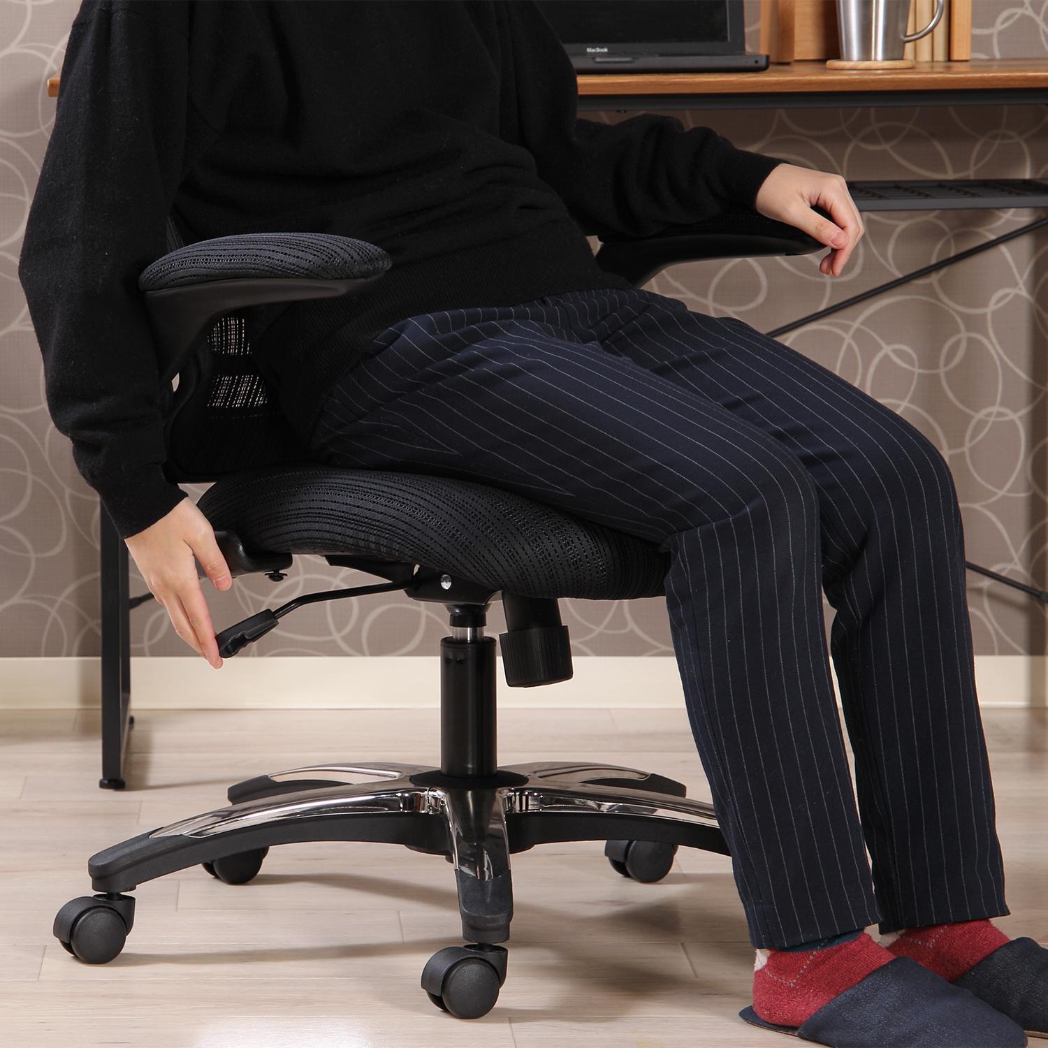 肘掛け跳ね上げ機能付きのオフィスチェア。