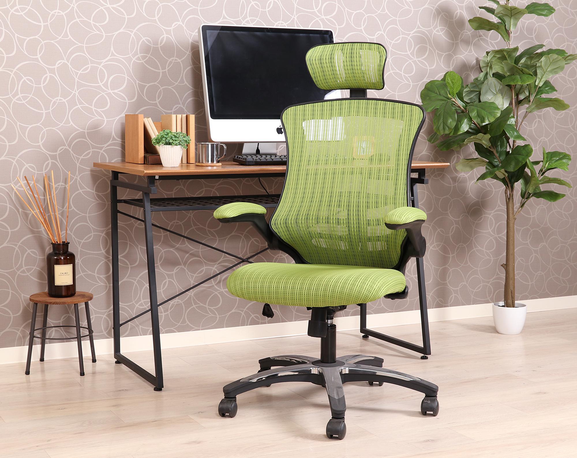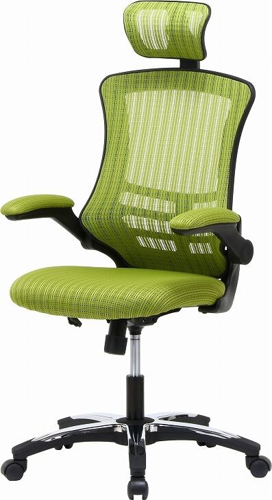 メッシュ アームアップチェアー マスターIII グリーン ヘッドレスト 椅子 通気性 快適