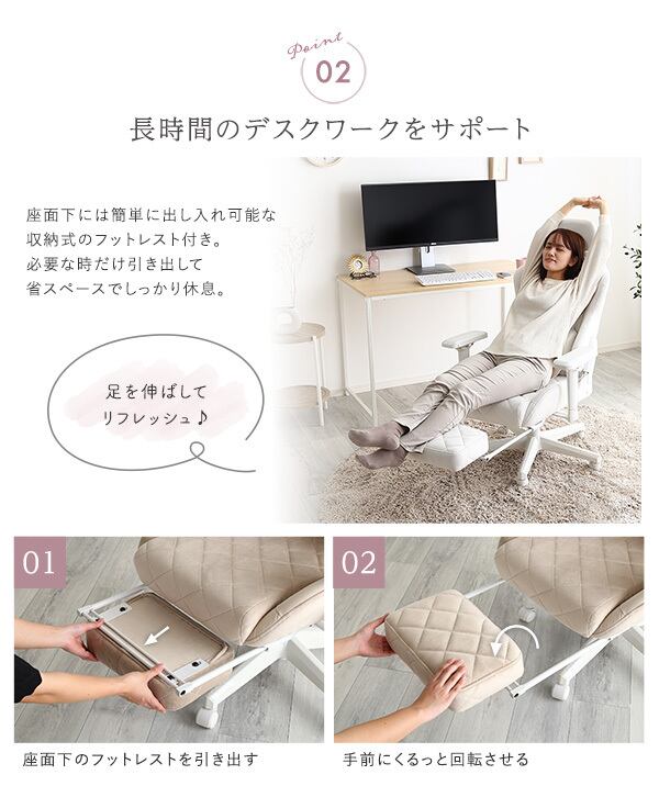 かわいいゲーミングチェア オットマン付き
