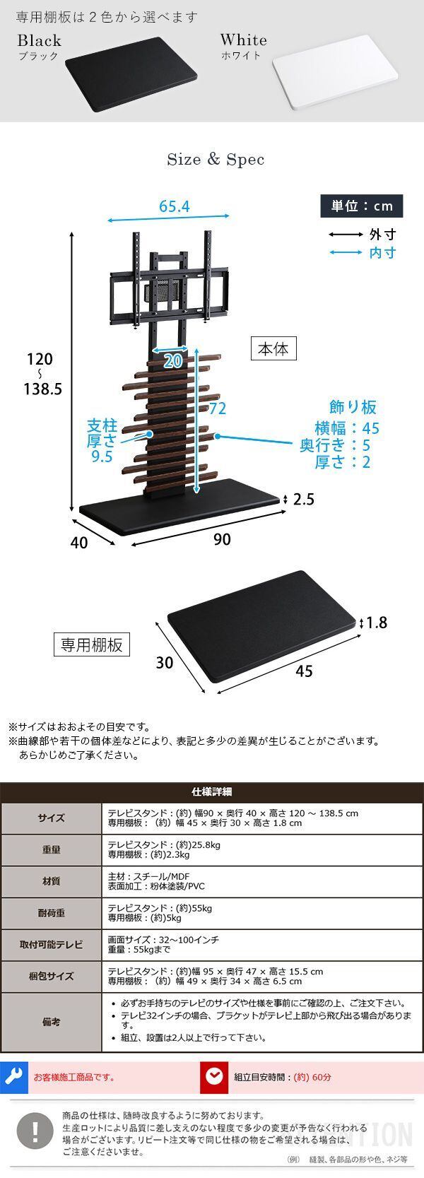 最大100インチ対応 デザイン テレビスタンド 専用棚板セット