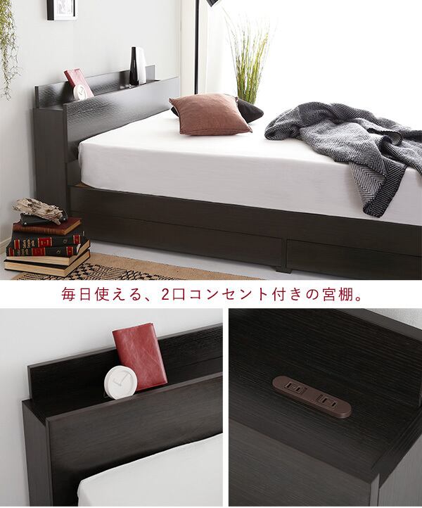 棚 コンセント付き 収納付き デザインベッド ベッドフレームのみ 抗菌 防臭機能 木目調 ダイン/シングル