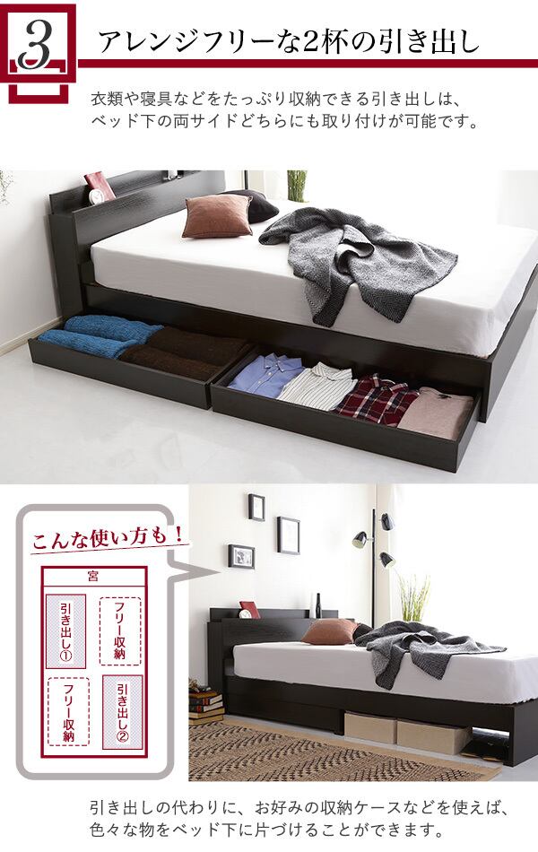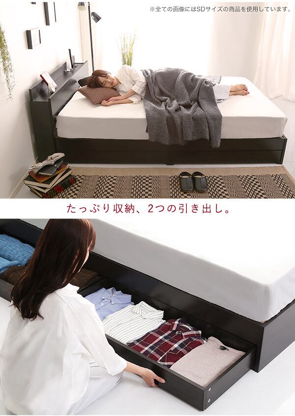 このベッドフレームは、お部屋をスッキリとまとめる収納スペースと共に、快適な眠りをサポートします。疲れた日々の疲れを癒し、次の日に備えるために、このデザインベッドでリラックスを楽しんでください。