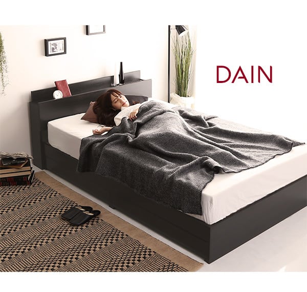 棚 コンセント付き 収納付き デザインベッド ベッドフレームのみ 抗菌 防臭機能 木目調 ダイン/ダブル