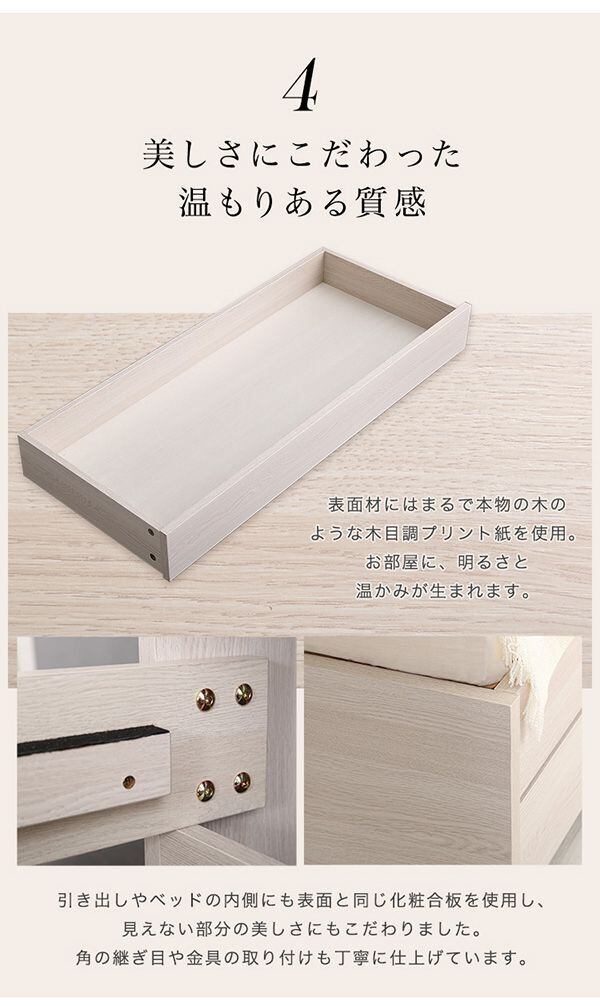 このウォールナット調のコンパクトベッドは、お部屋を明るく温かみのある空間に変えてくれるアイテムです。宮棚にはスマホや小物を置くことができ、便利な2口コンセントも付いています。衣類や寝具などをたくさん収納できる引き出しも嬉しいポイントです。シングルサイズなので限られたスペースでも使いやすく、快適な睡眠をサポートしてくれます。木目調のデザインはどんなお部屋にも合わせやすく、おしゃれなインテリアに仕上げてくれます。快適な眠りとスッキリしたお部屋作りを叶える、アネールのコンパクトベッドをぜひご自宅に取り入れてください。