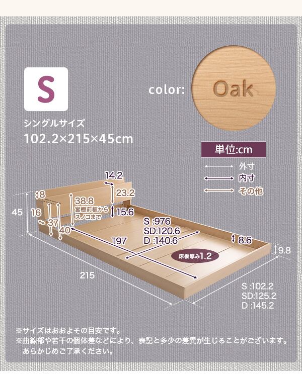 コンセント付き デザイン フロアベッド 抗菌 防臭機能 ナチュラル オーク調 ラニ/シングル