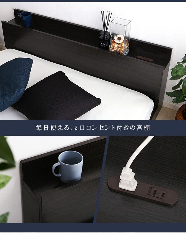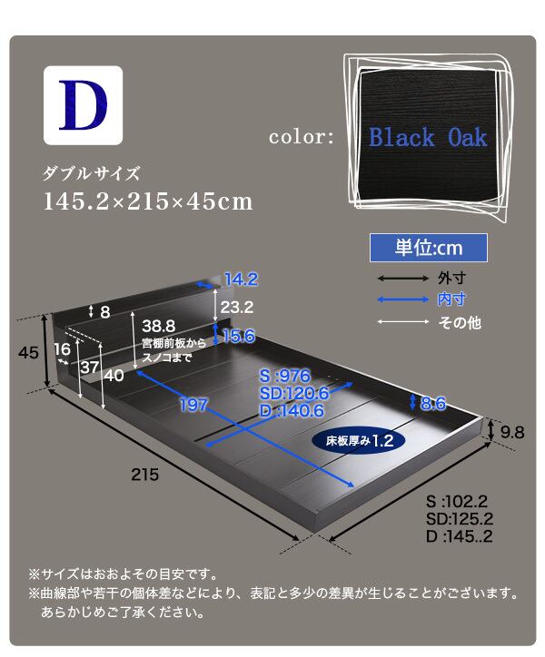 コンセント付き デザイン フロアベッド 抗菌 防臭機能 ブラックオーク アズロ/ダブル
