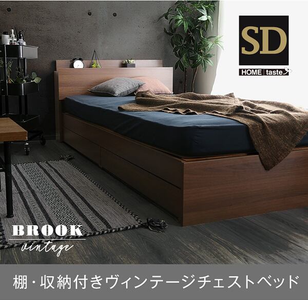 棚 収納付き ヴィンテージ チェストベッド コンパクトベッド BROOK/セミダブル