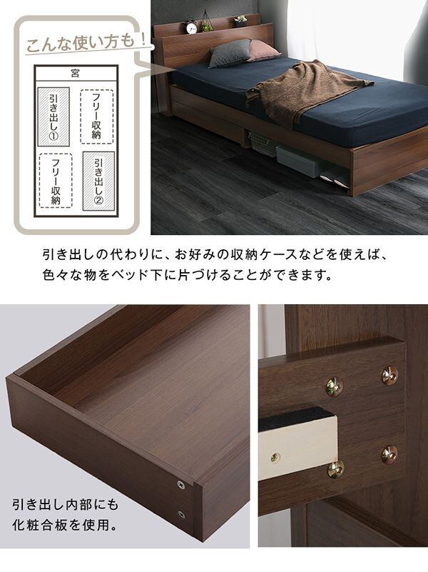 ヴィンテージチェストベッドシングルサイズのBROOKは、収納力抜群でお部屋をおしゃれに演出します。引き出しや宮棚、2口コンセント付きで、衣類や寝具などの収納に重宝する便利な一台です。高級感のある色味がお部屋にアクセントを与え、落ち着いた雰囲気を作り出します。