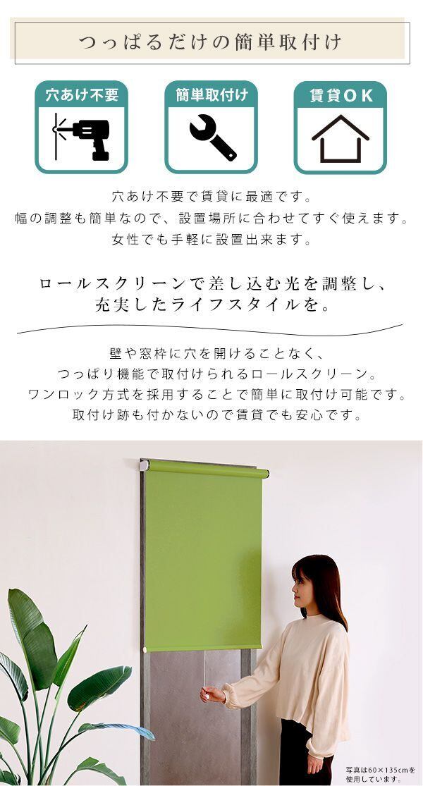 簡単取り付け♪壁を傷つけることなく使えるつっぱりロールスクリーン。遮光タイプで、光や視線をしっかり遮断してプライバシーを守ります。幅180cm×180cmの大きめサイズで、お部屋全体をスッキリと引き締めることができます。賃貸住宅でも、穴を開けることなく設置可能なので、移動が多い方や一時的な使用にも最適です。カラーバリエーションも豊富で、お部屋の雰囲気やインテリアに合わせてお選びいただけます。ぜひ、お部屋のアクセントになるつっぱりロールスクリーンで、快適な空間を演出してください。