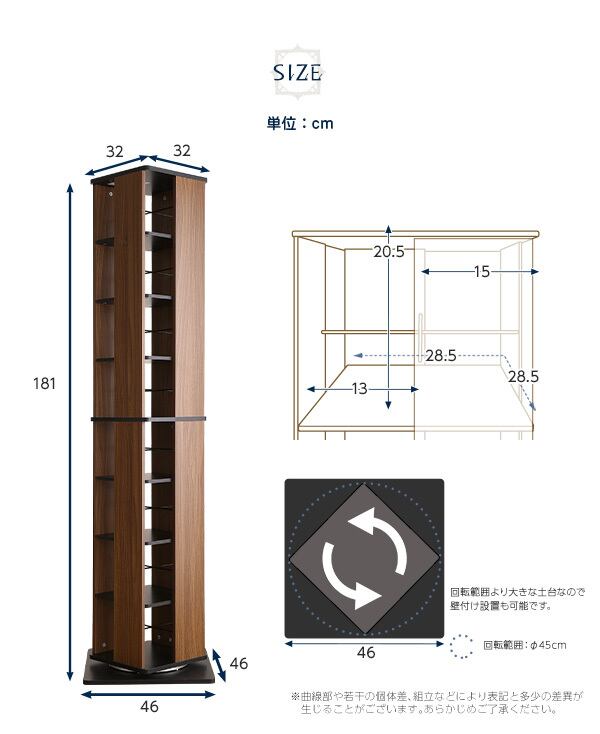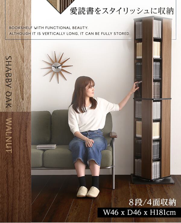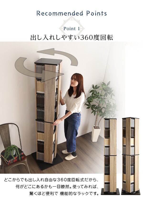 省スペース 回転 ブックラック CDラック 本棚 ケース棚 8段