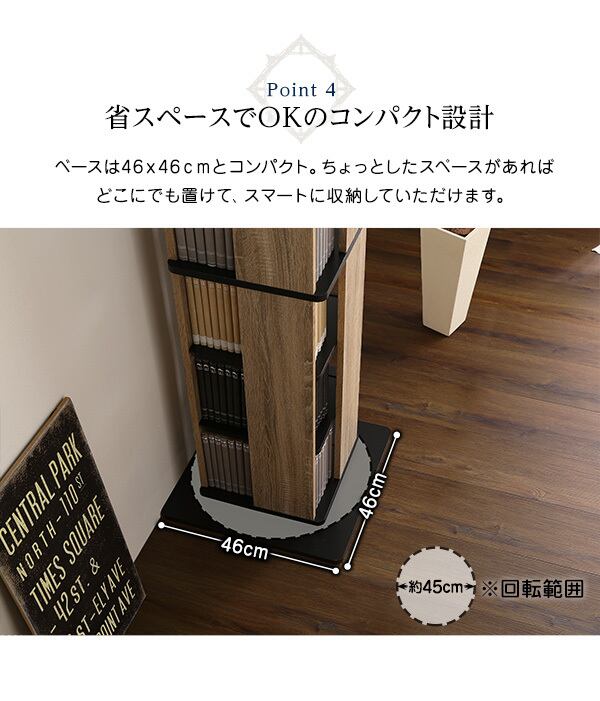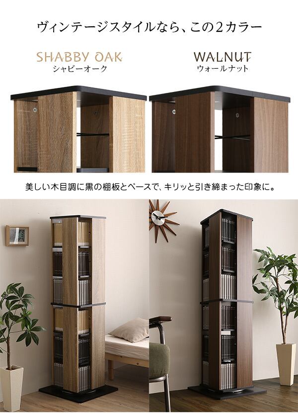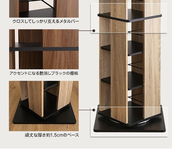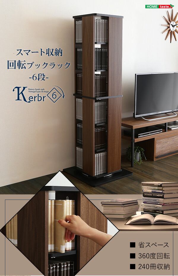 省スペース 回転 ブックラック CDラック 本棚 ケース棚 6段