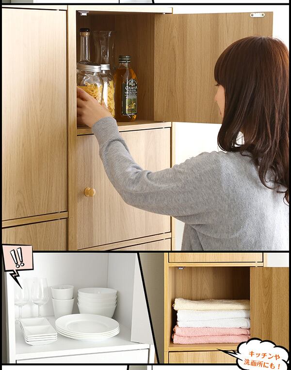 扉付きで中身が見えないので、ごちゃついた印象も軽減。扉はマグネット式なので、開け閉めも簡単です。お気に入りのアイテムを整理整頓し、リラックスした空間を演出しましょう。