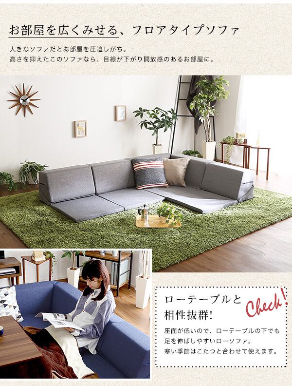 組み合わせ自由 日本製 コーナーローソファ フロアタイプ 2組セット 【Linum-リナム- 】