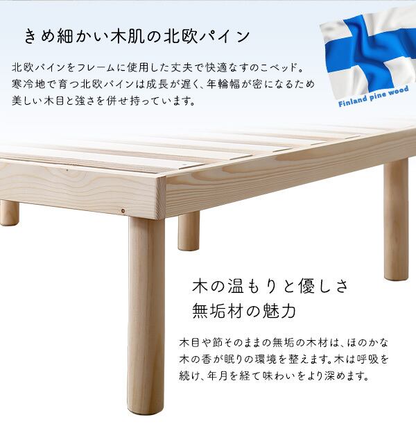 北欧産 パイン材 高さ2段階調整脚付き すのこベッド セミダブル
