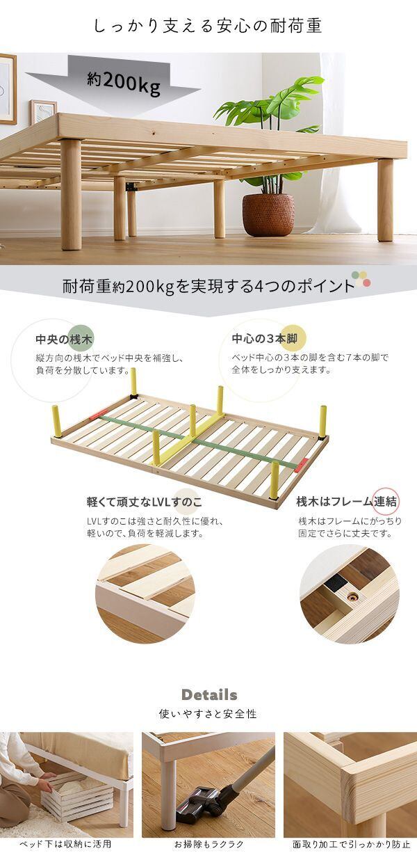 北欧産のパイン材を使用した、高さ2段階調整脚付きのすのこベッドが登場しました!通気性と耐久性に優れた頑丈設計で安眠をサポートします。さらに、低ホルムアルデヒド仕様で健康にも配慮されています。セミダブルサイズなので、くつろぎ空間をより快適に演出します。