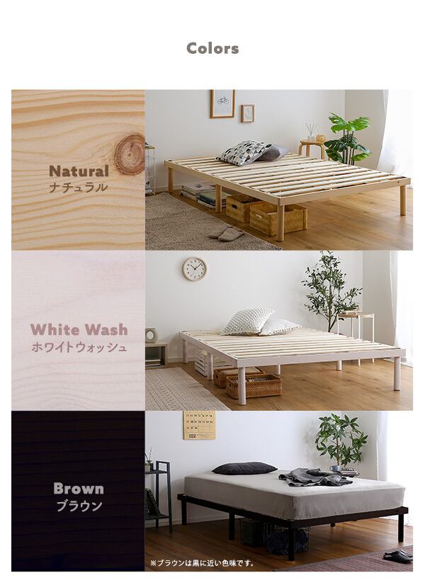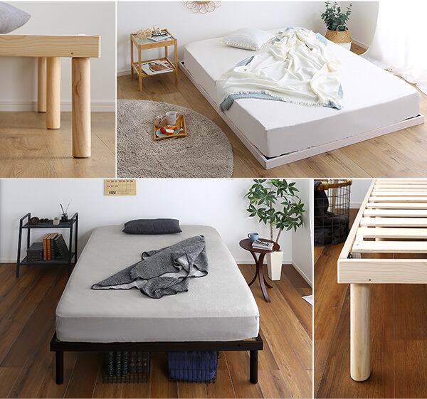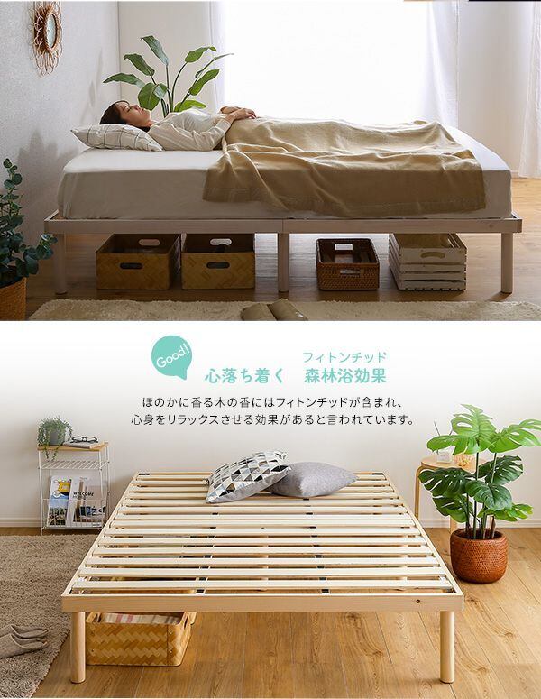 快適な眠りを提供する北欧産パイン材のすのこベッド。高さ2段階調整可能な脚が付いているから、お好みの高さに設定可能です。通気性にも優れ耐久性の高いパイン材フレームを使用しているので安心。さらに低ホルムアルデヒド仕様なので健康にも配慮した設計。