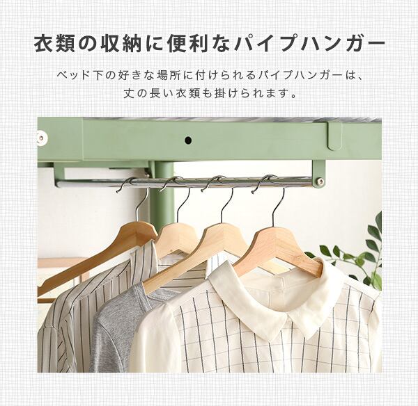耐荷重120kgの安心・安全設計で、快適な眠りをサポートします。ベッド下は収納スペースとしても活用でき、お部屋をスッキリと片付けることができます。