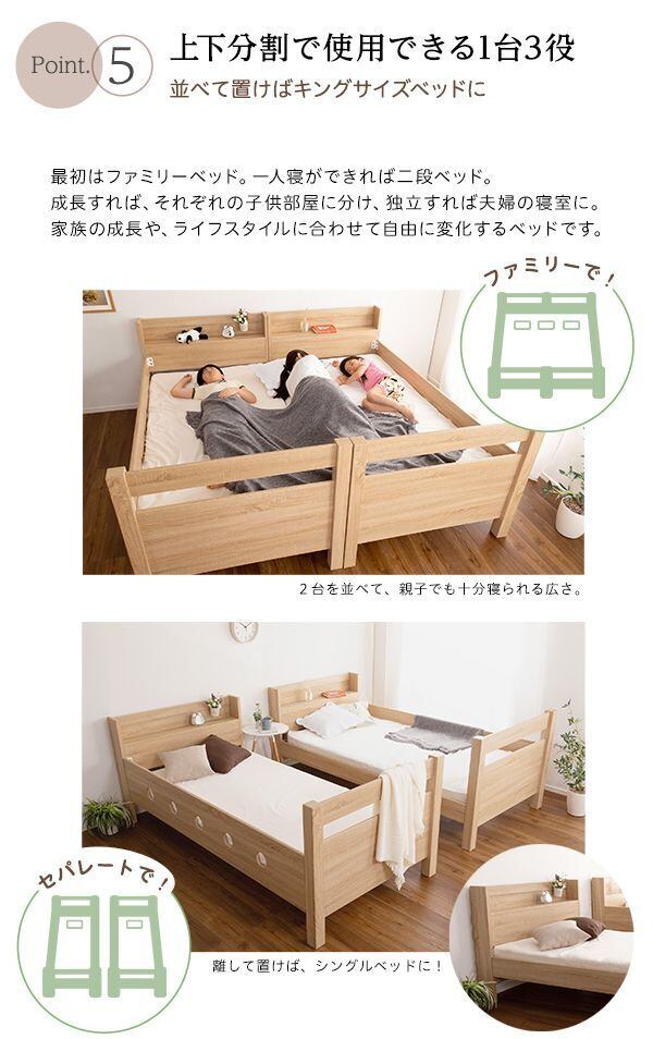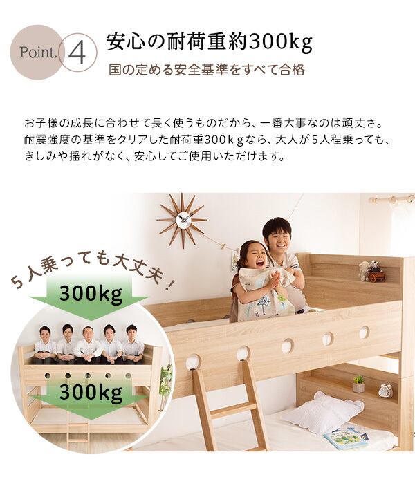 快適な睡眠環境を演出し疲れを癒します。お子様の成長に合わせてベッドの高さを変えられるので、長くご利用いただけます。