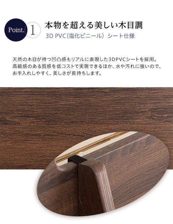 木目調のベッドは快適な睡眠環境を提供すると同時にお部屋のインテリアにも一役買います。木目調の3Dシートがお部屋に自然なアクセントを加え落ち着いた空間作りを実現します。