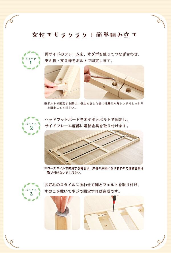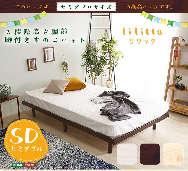 パイン材 高さ3段階 調整脚付き すのこベッド フレームのみ セミダブル