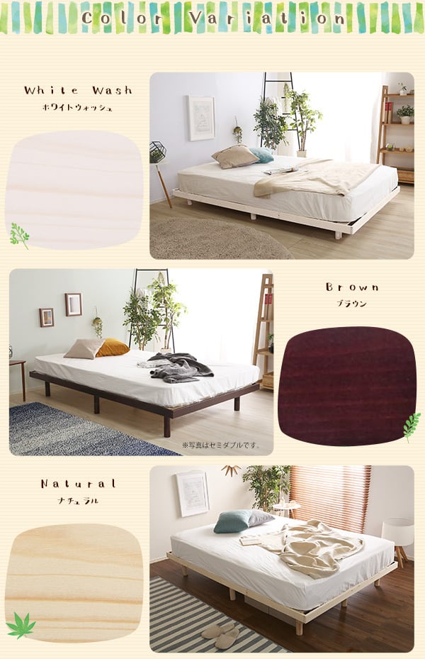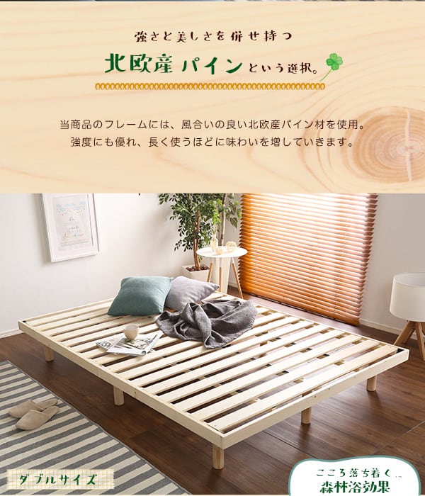 パイン材 高さ3段階 調整脚付き すのこベッド フレームのみ ダブル