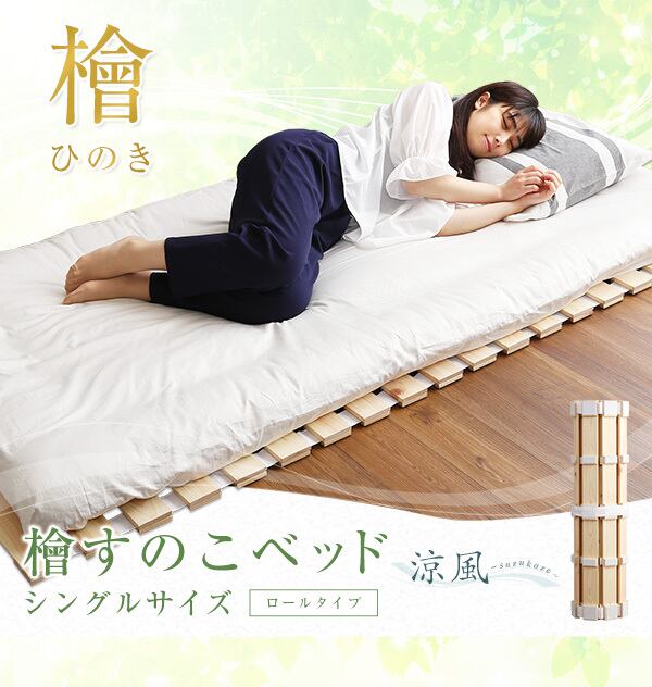 通気性 すのこベッド ロール式 檜仕様 シングル 【涼風】