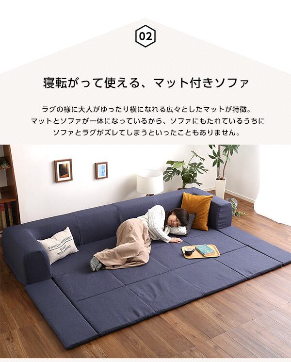 2Wayスタイルで使い勝手バツグン!フロアマット付きのローソファLサイズが新登場!日本製の高品質ソファは、座り心地の良さにこだわり、長時間座っていても疲れにくい設計です。座面の広さとしっかりとしたクッションで、快適なくつろぎ空間を提供します。