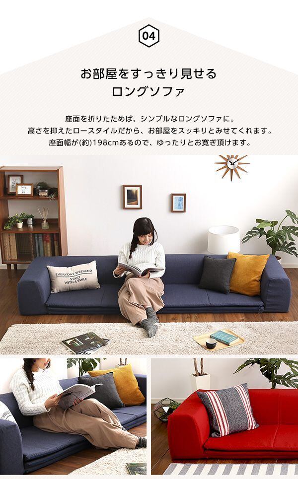 さらに、機能性も抜群!マットを広げれば、大人も快適に寝転がれ、お子様には安心して遊べるプレイマットとしても活躍します。一方、マットを折りたためば、シンプルなロングソファとして使用可能です。