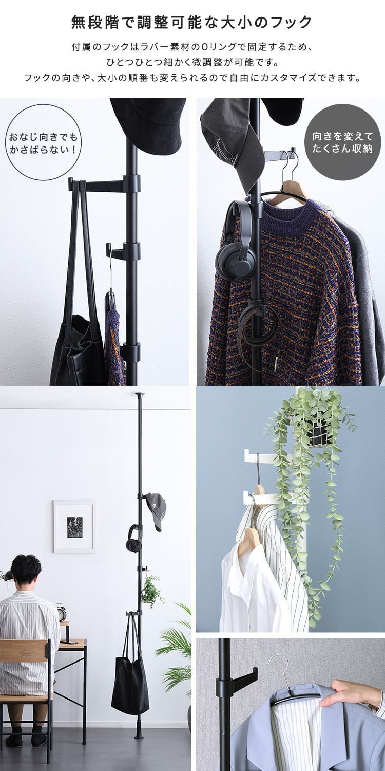 このつっぱりポールハンガーは、シンプルながらも存在感のあるデザインで、インテリアにもマッチします。おしゃれに収納を楽しめるアイテムとして、ぜひあなたのお部屋に取り入れてはいかがでしょうか?また、使わないときはコンパクトにまとめて収納できるので、賢い収納術もサポートします。